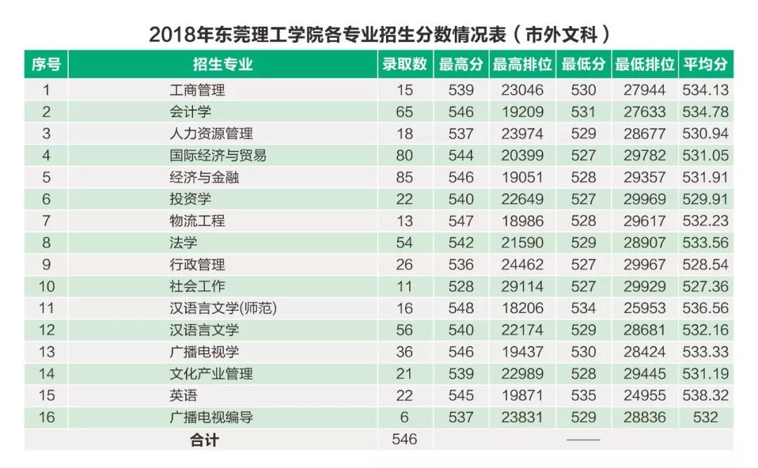2018年东莞理工学院省内市外各专业录取分数表