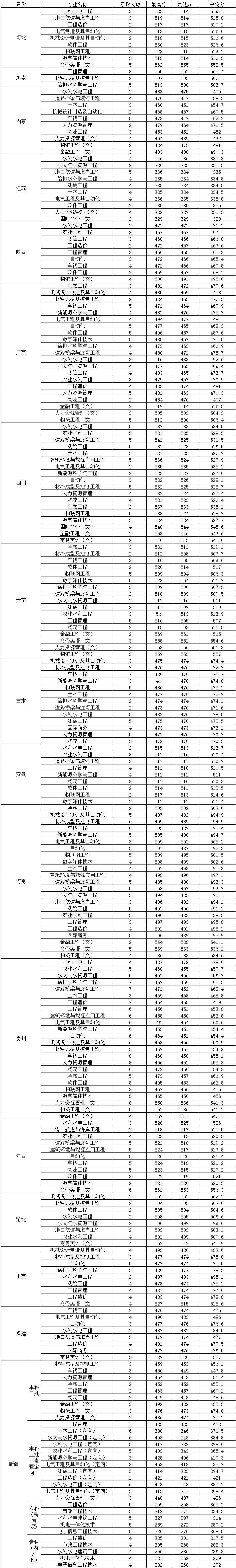浙江水利水电学院2018年分省分专业录取分数线