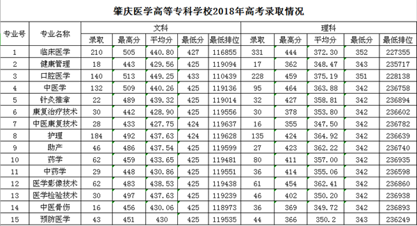 2018年肇庆医学高等专科学校录取分数线【全国】