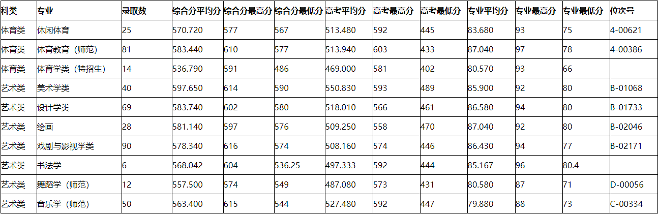 | 科类 | 专业名称 | 录取数 | 最低分 | 最高分 | 平均分 | 位次 |