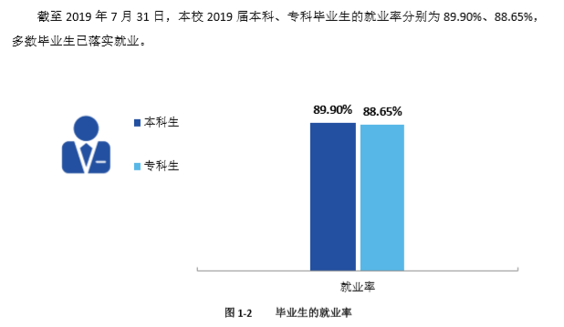 百色学院本科就业率为89.90%,专科就业率为88.65%。