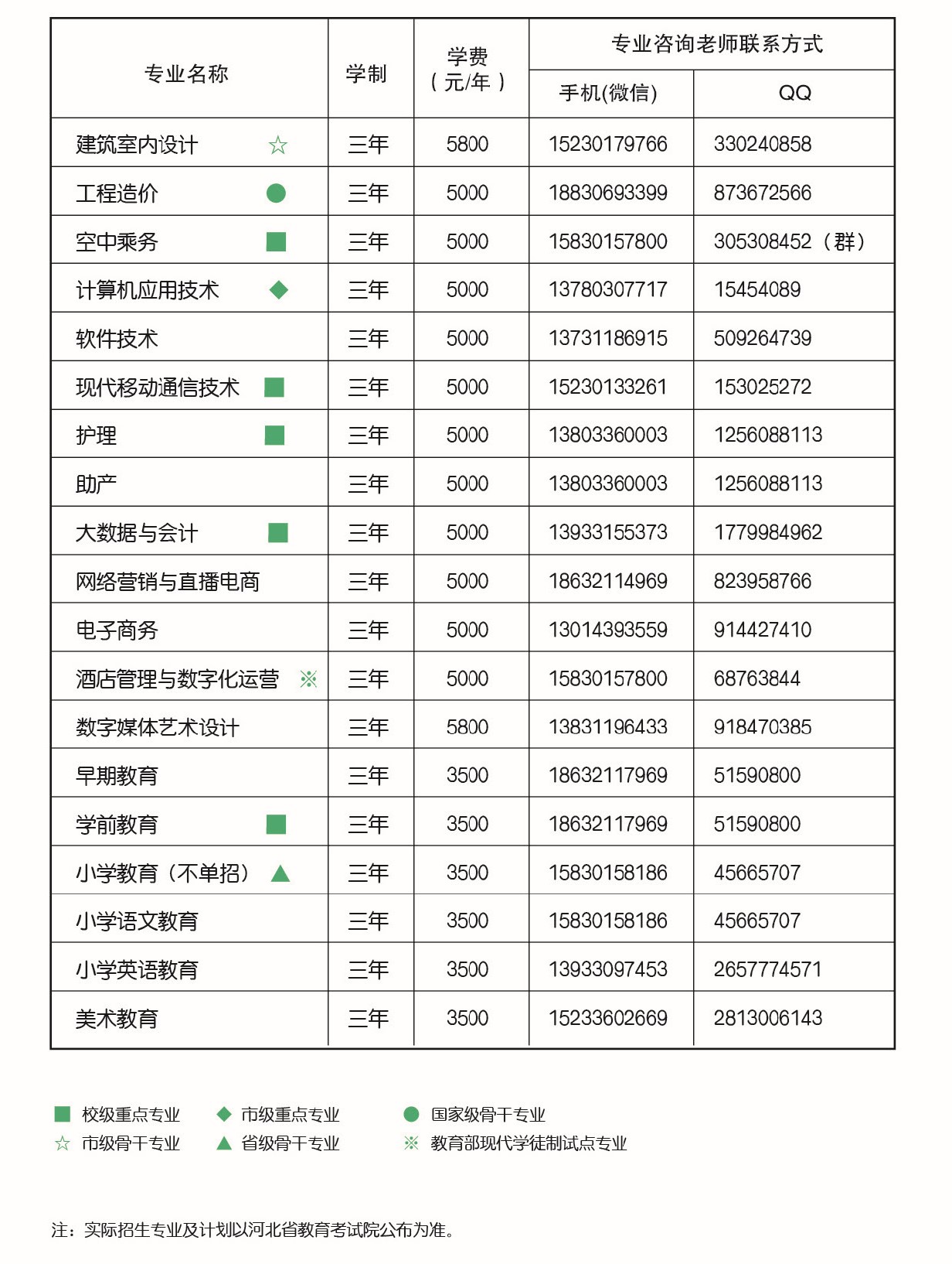 河北正定师范高等专科学校学费多少钱一年、各专业收费标准