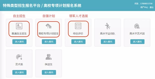 考生注册并登陆后(报名账号为同一个,切勿重复注册),分别点击“自主招生”“综合评价”“高校专项计划”进行报名。