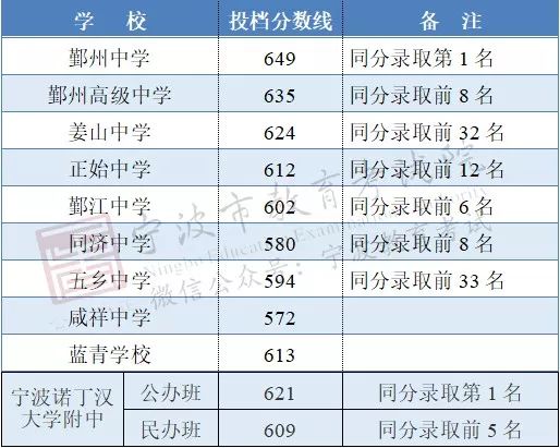 宁波诺丁汉大学附中(民办班):609(同分录取前5名)
