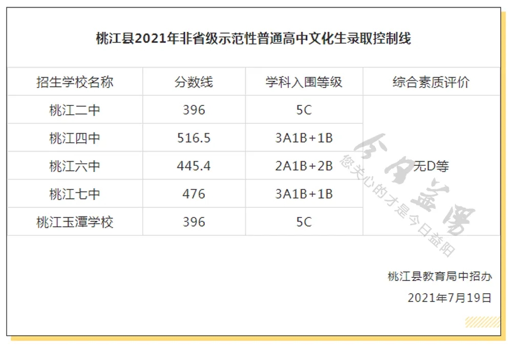 桃江县一中面向桃江招生,分数线为556.5,学科等级为1A+4A