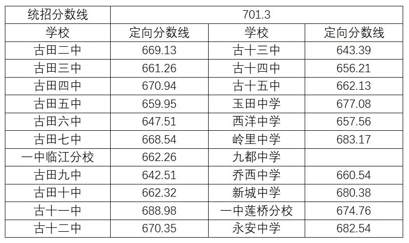 2024年宁德市古田县高中招生录取分数线公布,具体如下: