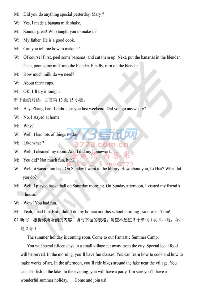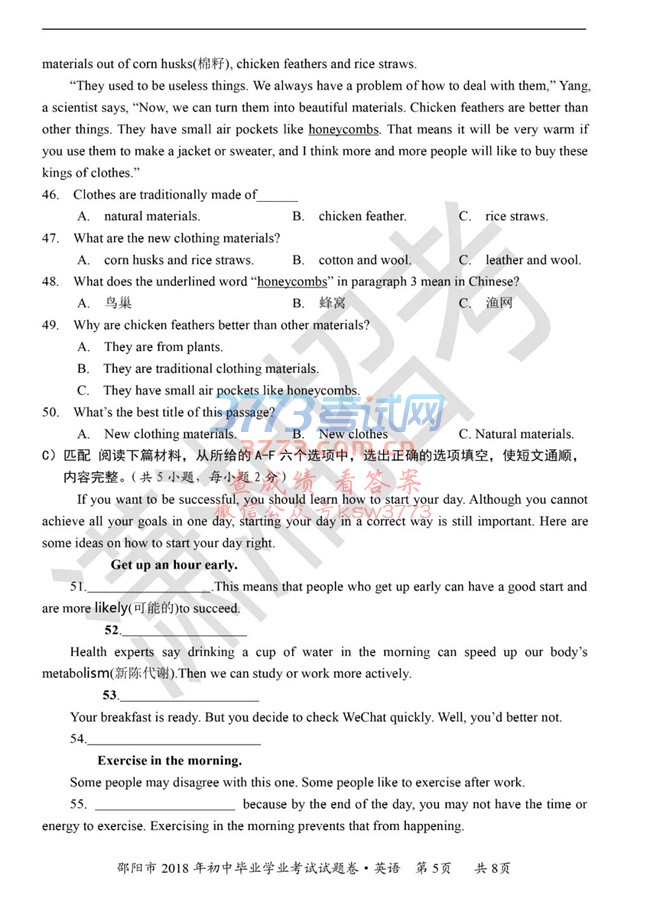 精英中考网消息:2018年邵阳中考结束,小编第一时间收集整理2018邵阳中考英语试题答案及评分标准,供广大考生参考