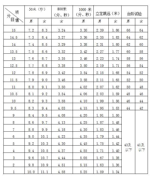 (一)身体素质、身体机能评分标准