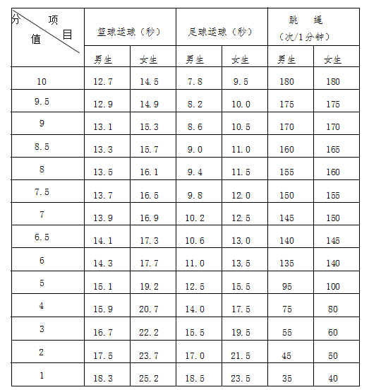 2025年初中毕业生学业(升学)体育考试评分标准