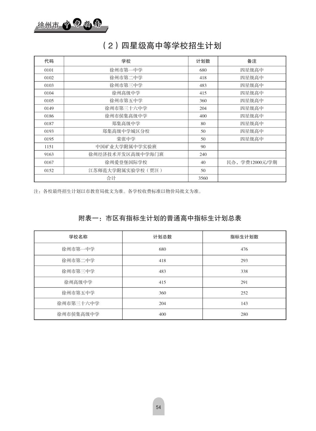 2019年徐州市区普通高中招生计划