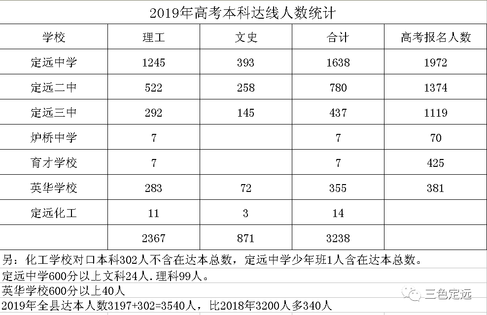 2019年高考,全县本科达线3540人,比2018年增加340人。本科达线、一本达线及高分段人数等重要指标均创定远教育近年来最好成绩。