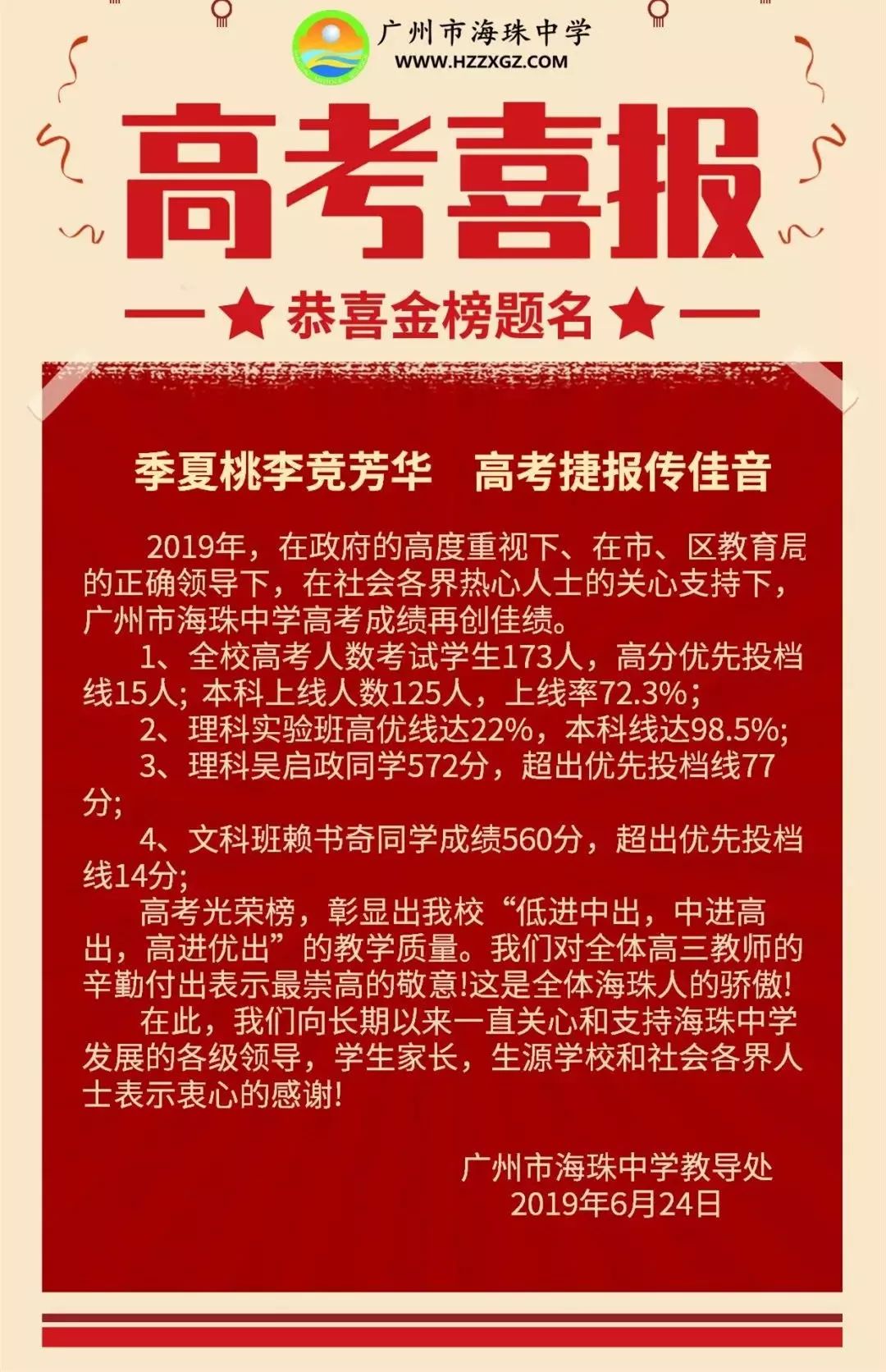 广州市海珠中学高考喜报