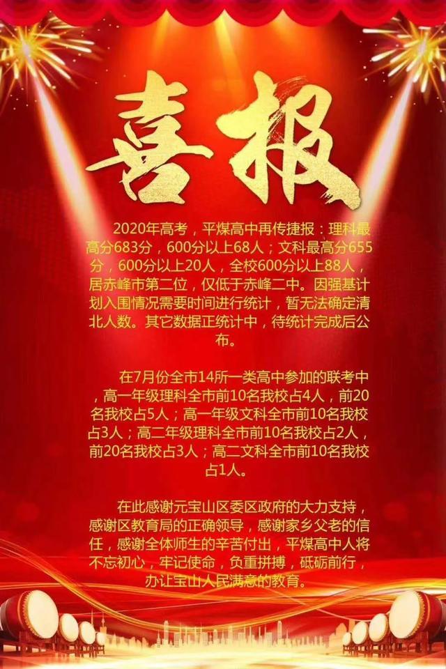 2020赤峰市平煤高中高考喜报成绩、本科一本上线人数情况