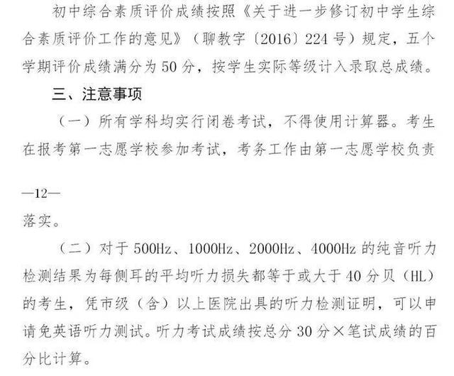 2020聊城中考总分满分、各科目分值、时间日期安排