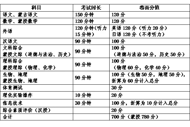 2021巴彦淖尔中考总分满分、各科目分值设置