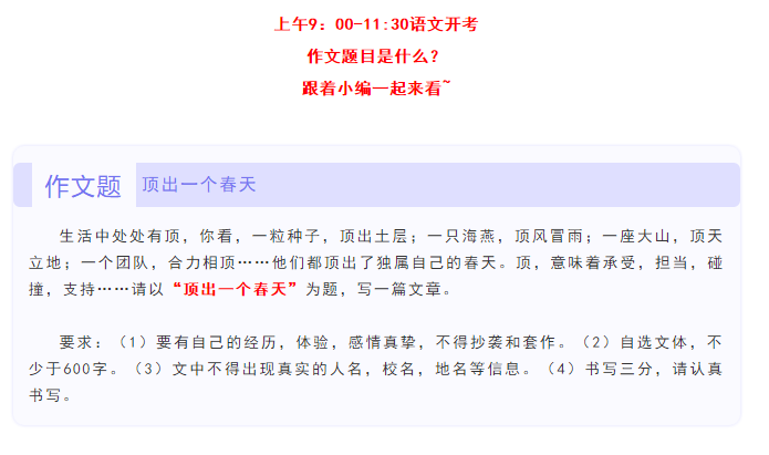 2019年扬州中考作文题目:顶出一个春天。具体详情如下所示: